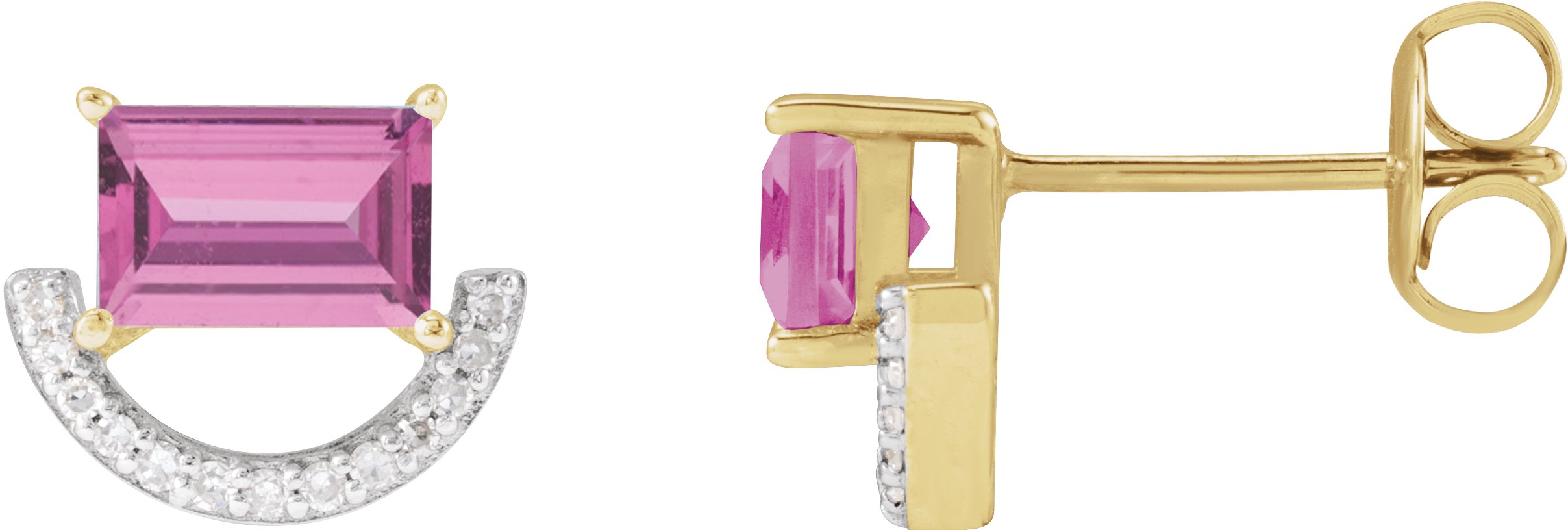 688955 / Earring / Set / Imitation Pink Sapphire / Straight Baguette / 6 X 4 Mm / 14K Yellow / Natural Diamond / Pair / Friction Back Included / Polished / Imitation Pink Sapphire And 3/4 Ctw Natural Diamond Earring With 14Kw Rhodium-Plated Prongs