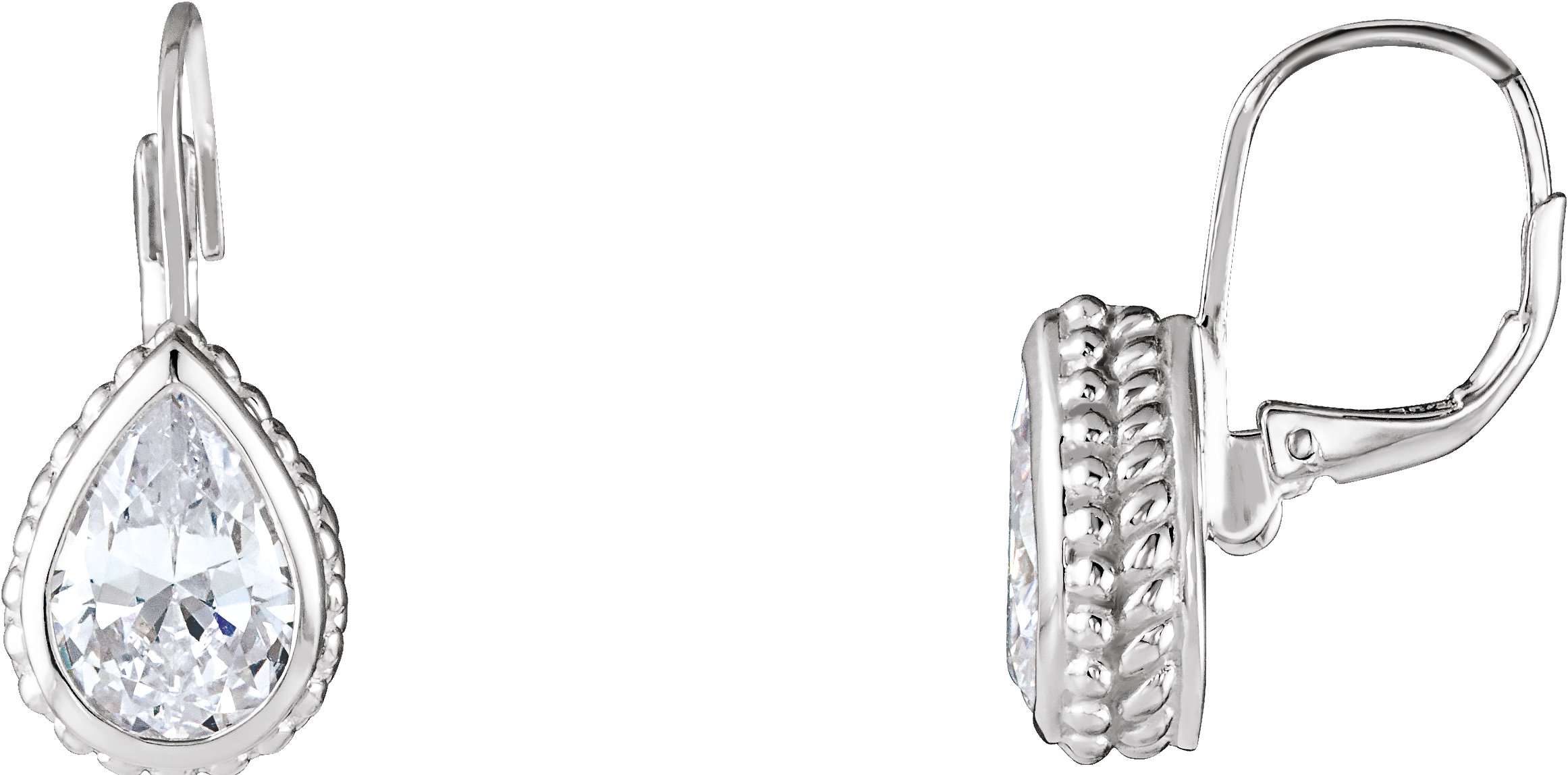 61827 / Earring / Set / Imitation White Cubic Zirconia / Pear / 10 X 7 Mm / Sterling Silver / Pair / Leverbacks / Polished / Imitation Cubic Zirconia Earrings