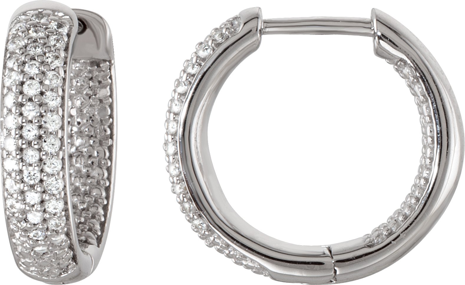 69877 / Earring / Set / Sterling Silver / 14 Mm / 3.5 Mm / Imitation White Cubic Zirconia / Round / Pair / Hinged / Polished / Imitation White Cubic Zirconia Hoop Earrings