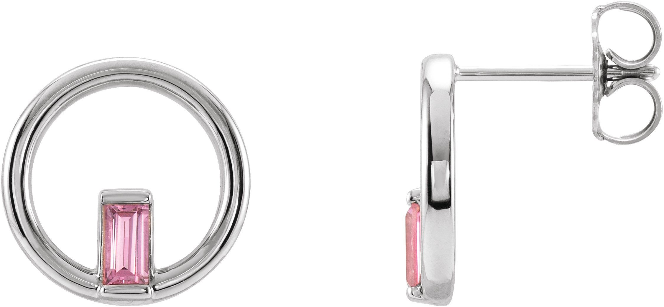 87333 / Earring / Set / Natural Pink Tourmaline / Straight Baguette / 4 X 2 Mm / Sterling Silver / Pair / Friction Backs Included / Polished / Natural Pink Tourmaline Circle Baguette Stud Earrings