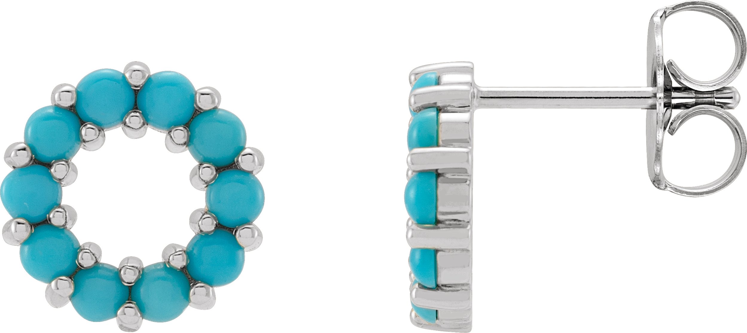 88085 / Earring / Set / Natural Turquoise / Round / 2 Mm / Sterling Silver / Pair / Friction Backs Included / Polished / Turquoise Cabochon Earrings