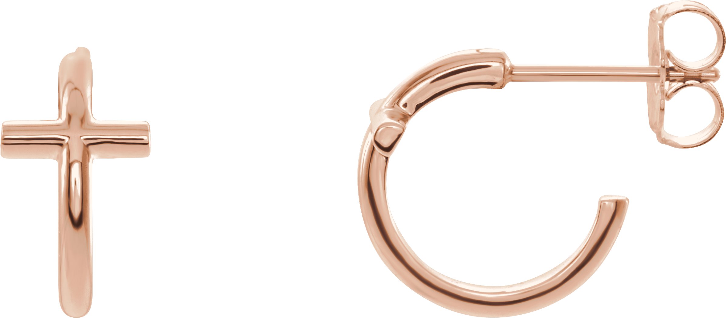 86809 / Earring / 14K Rose / Pair / Friction Backs Included / Polished / Cross Hoop Earrings
