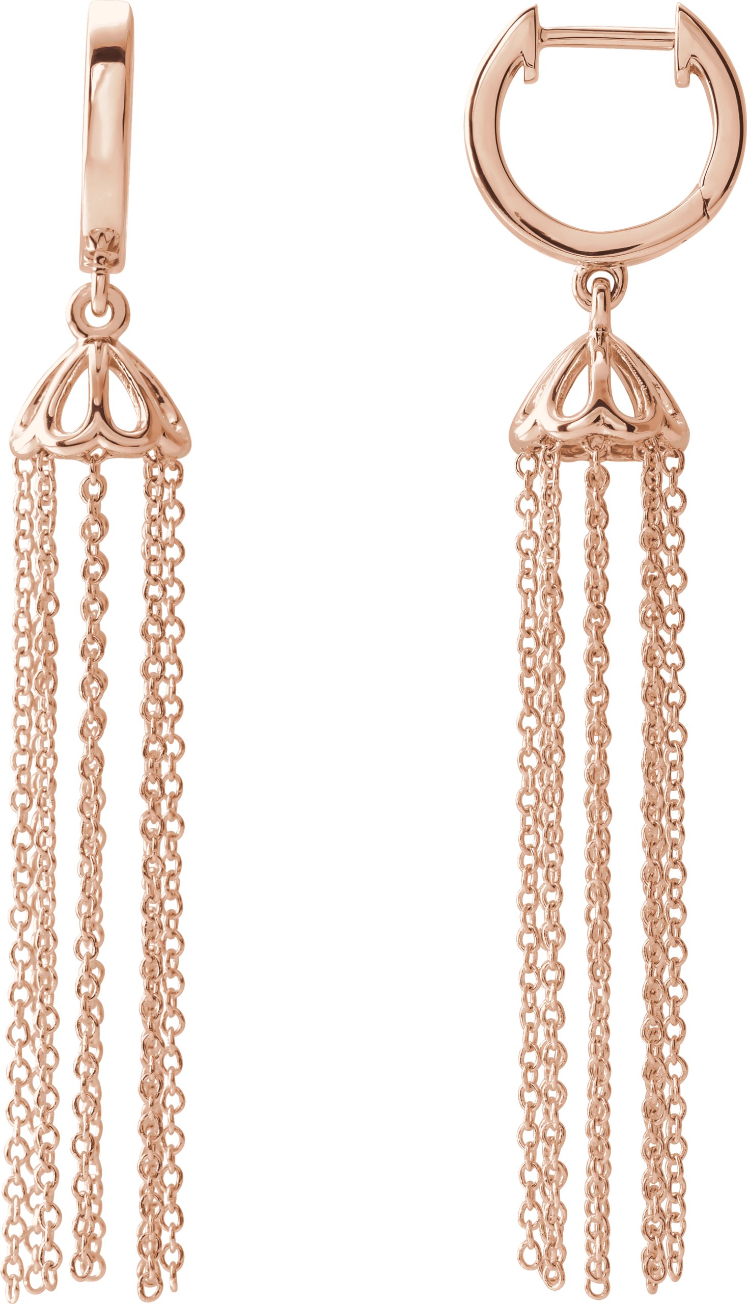 653613 / 53.2 Mm / 14K Rose / Pair / Polished / Hinged Hoop Earrings With Chain Tassels