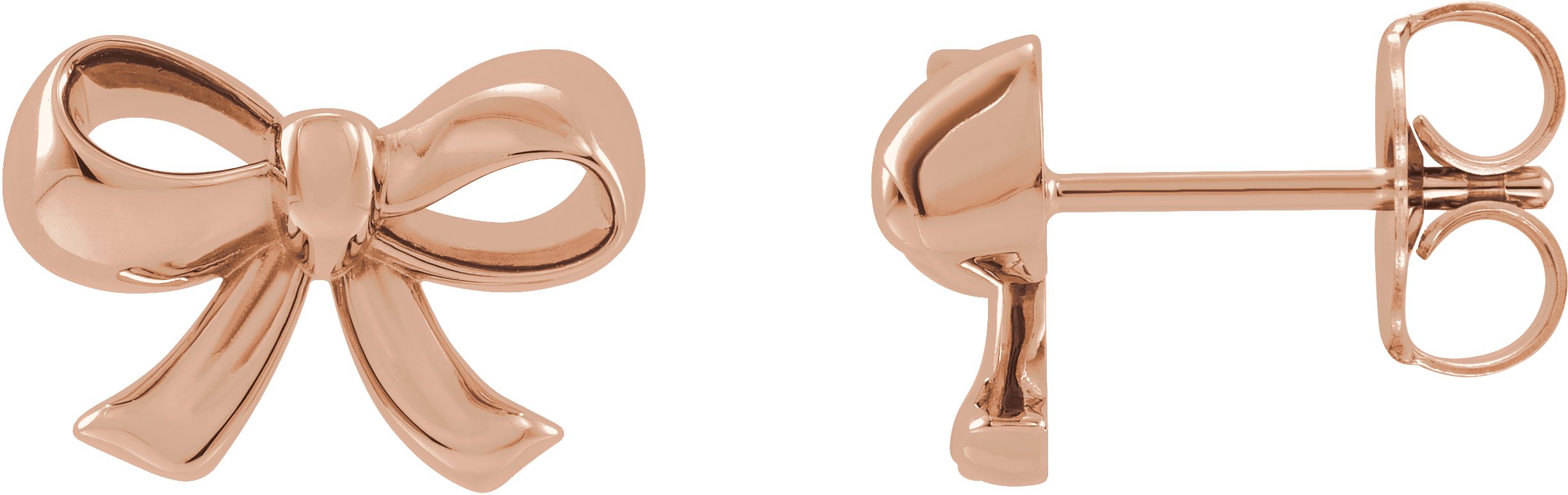 87323 / 12.02 Mm X 8.62 Mm / 14K Rose / Pair / Friction Backs Included / Polished / Bow Stud Earrings