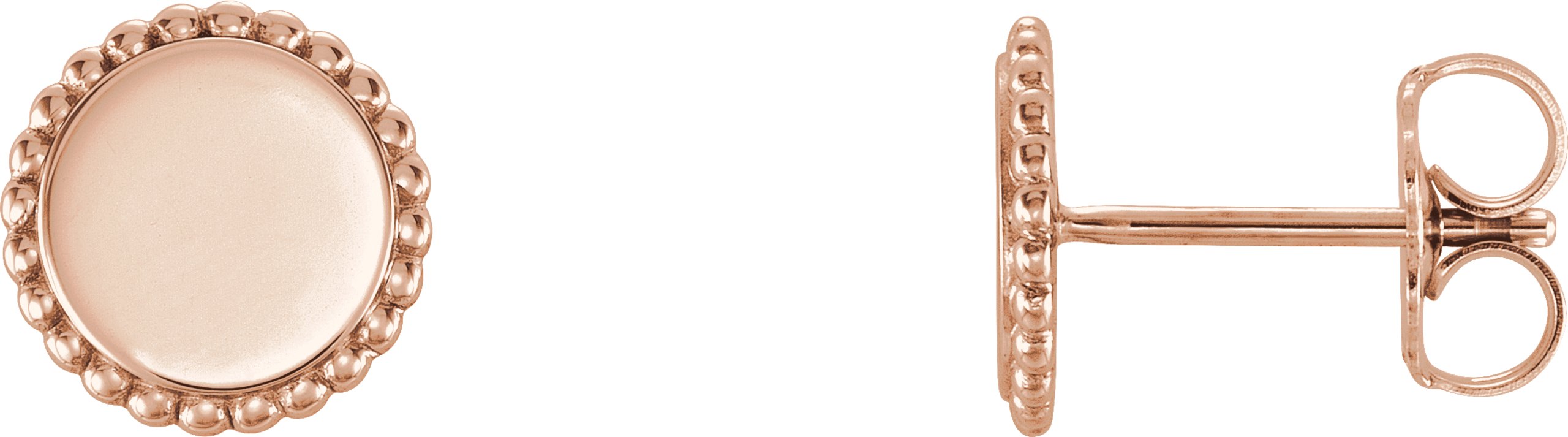 86471 / 14K Rose / Pair / Polished / Engravable Beaded Earrings