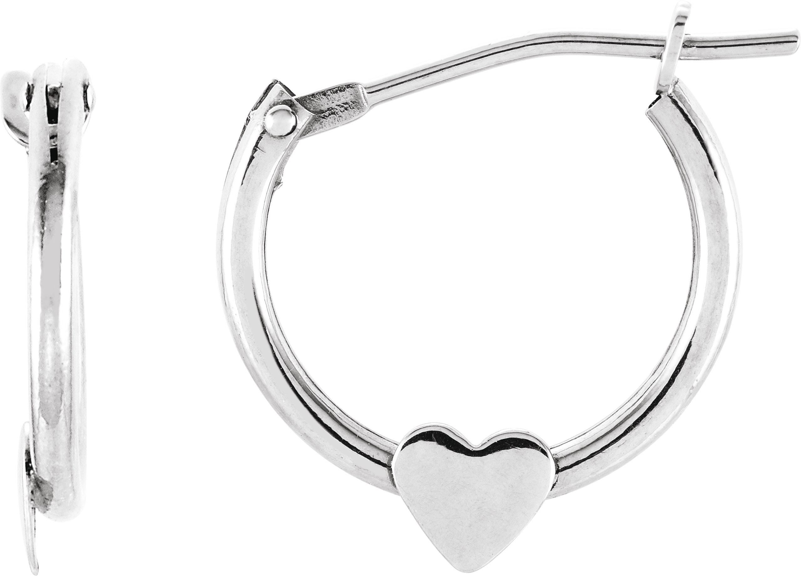 19102 / Earring / 14K White / 14.5 Mm / 2.5 Mm / Pair / Catch / Polished / Youth Hinged Hoop Heart Earrings
