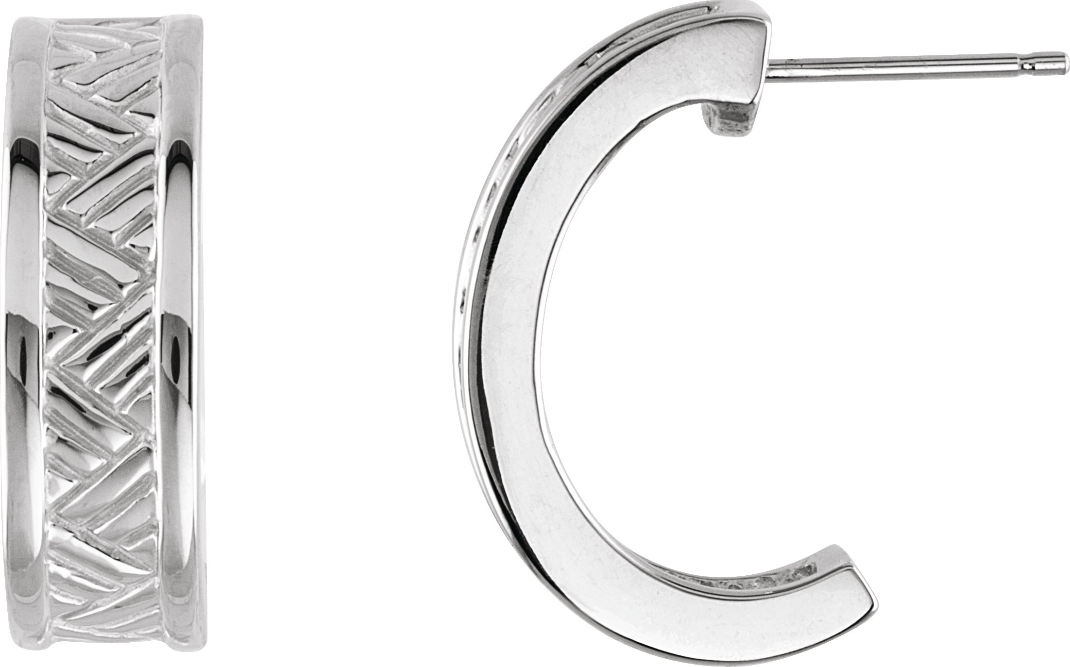14K White 19.5x6 mm Patterned J-Hoop Earrings