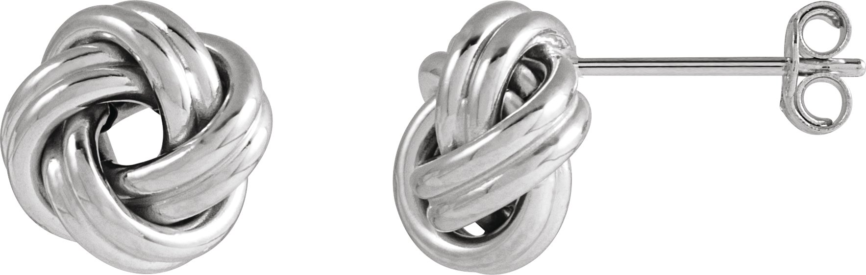 689093 / Earring / 14K White / 8 X 8 Mm / Pair / Friction Backs Included / Polished / Hollow Knot Earrings