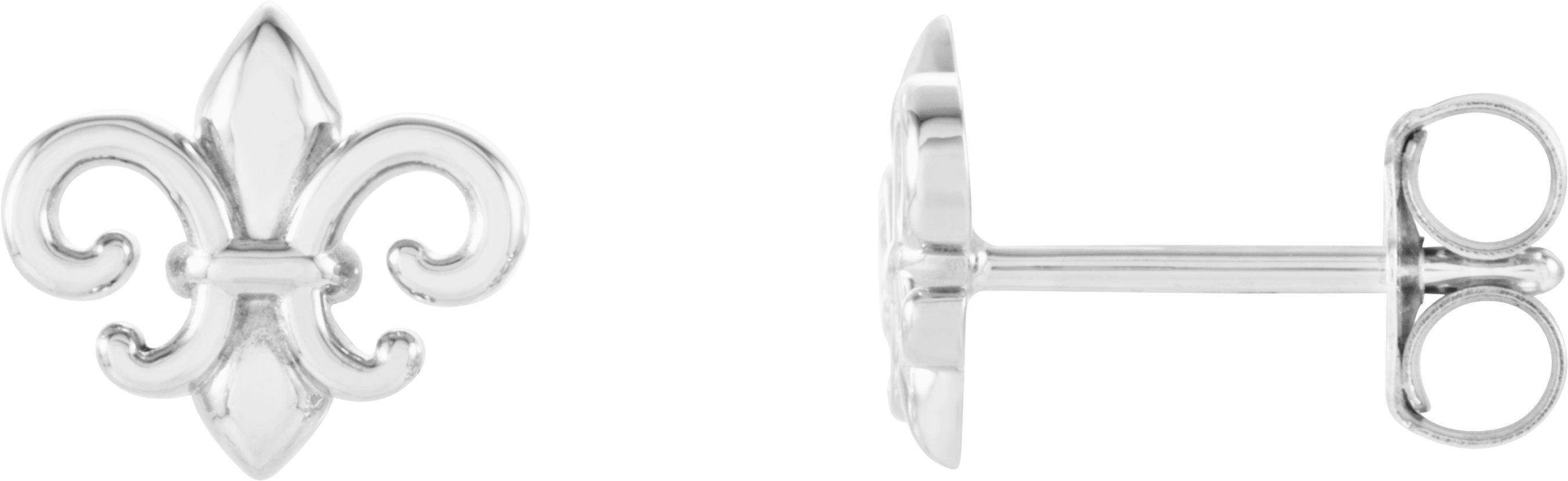 28615 / 14K White / Earring / Friction Backs Included / Pair / Without Box / Polished / Fleur De Lis Earrings