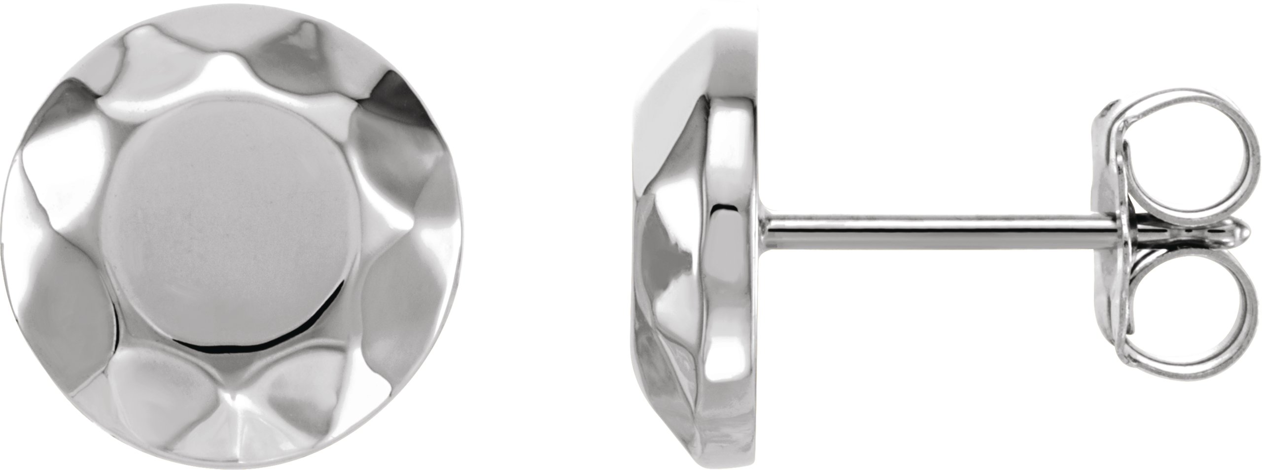 86239 / 14K White / Pair / Round Faceted Stud Earrings With Backs
