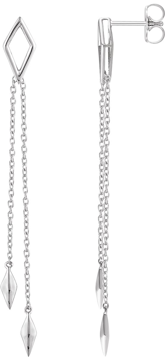 14K White Geometric Chain Earrings