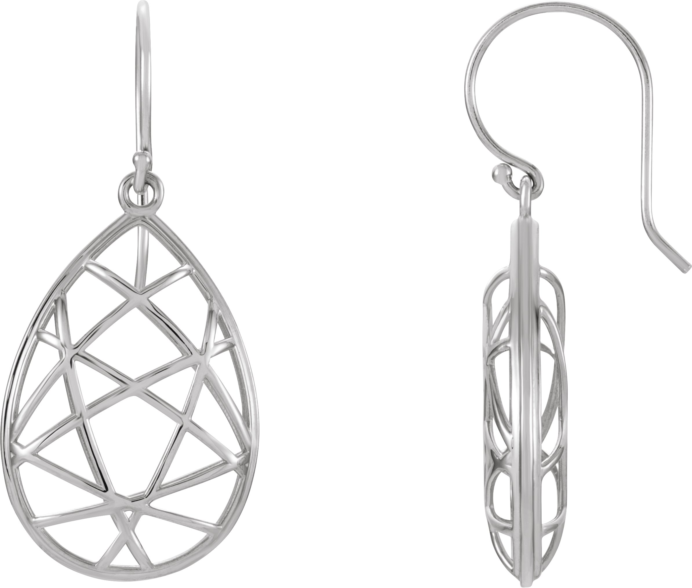 86100 / 14K White / Pair / Polished / Nest Design Dangle Earrings