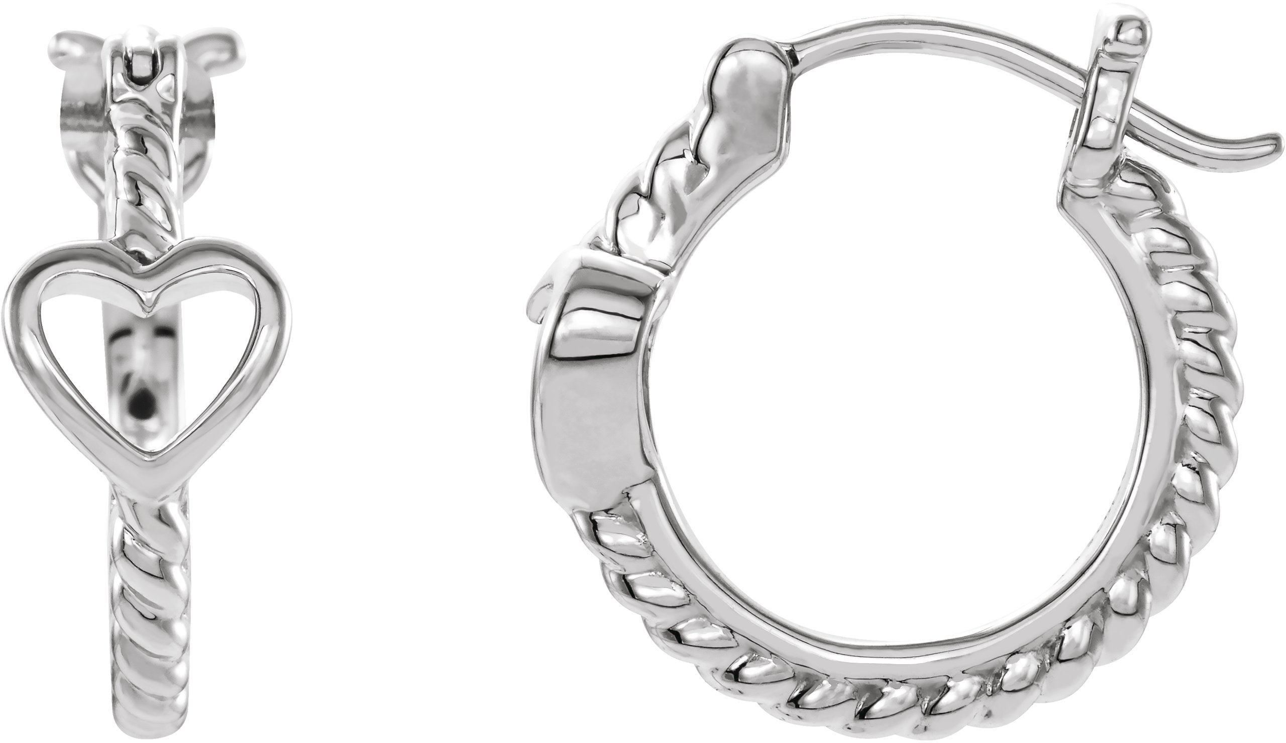 14K White Pierced Heart Rope Hoop Earrings