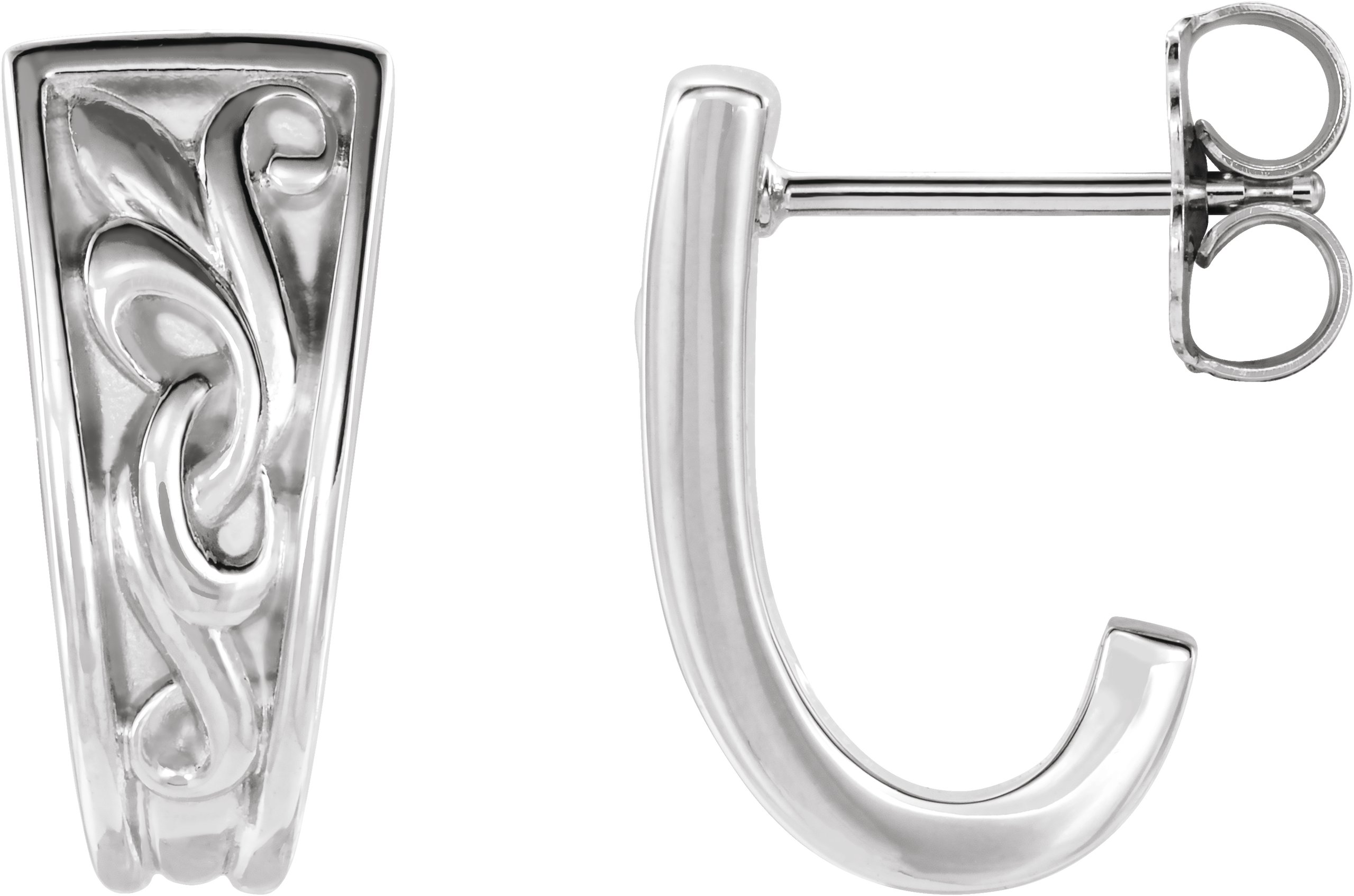 86732 / 14K White / Pair / Polished / Vintage-Inspired J Hoop Earrings With Backs