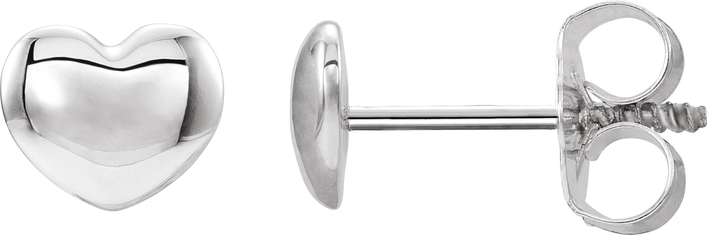 192034 / Earring / 14K White / 5.9 X 5.1 Mm / Pair / Threaded Backs Included / Polished / Puff Heart Earrings With Backs