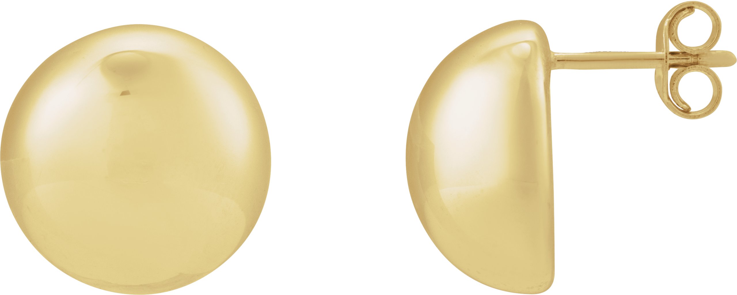 689329 / Earring / 14K Yellow / 15 X 15 Mm / Pair / Friction Backs Included / Polished / Round Domed Stud Earrings