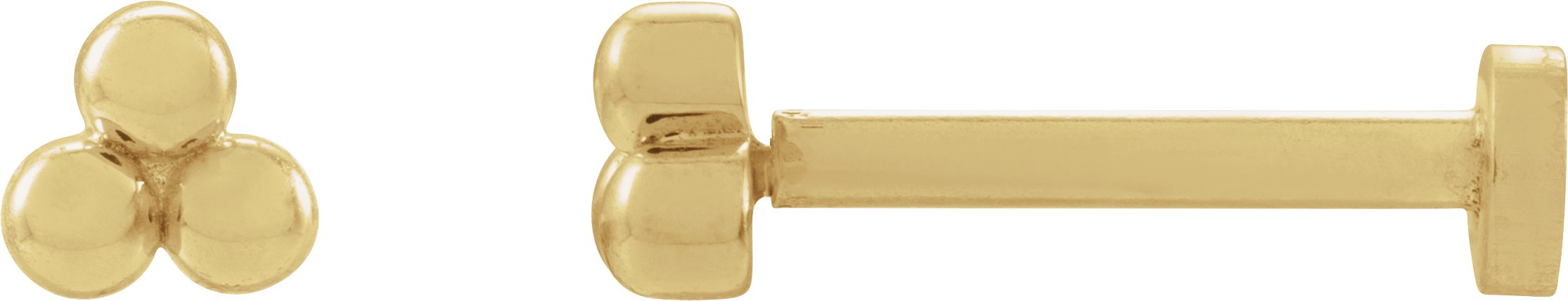 88214 / Earring / 14K Yellow / 3 Beads / 3.2 X 3 Mm / Pair / Press Fit Back Included / 6 Mm / Polished / Tiny Beaded Earring With Press Fit Post And Back