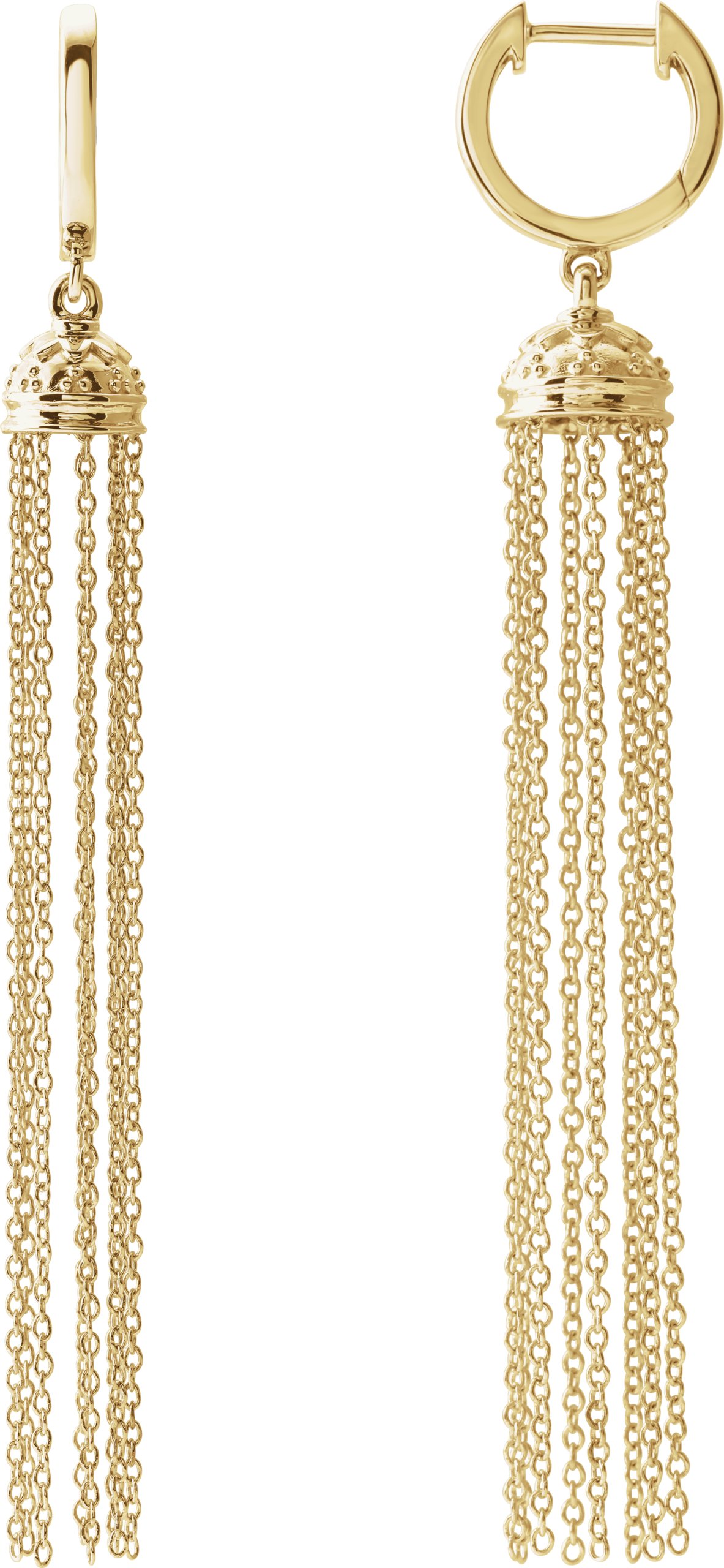 653638 / 56 Mm / 14K Yellow / Pair / Polished / Hinged Hoop Earrings With Chain Tassels
