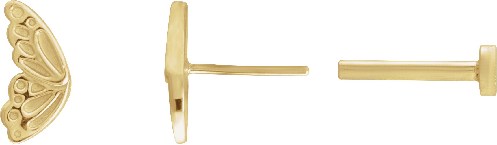 88103 / Earring / 14K Yellow / 7.1 X 4.1 Mm / Pair / Press Fit Back Included / 6 Mm / Polished / Butterfly Wing Earrings With Press Fit Post And Back