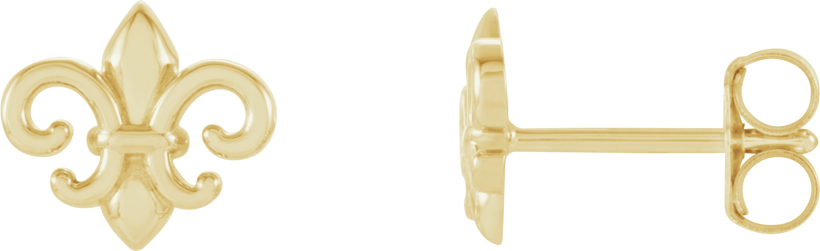 28615 / Earring / 14K Yellow / 8.2 X 7.4 Mm / Pair / Friction Backs Included / Polished / Fleur-De-Lis Earrings