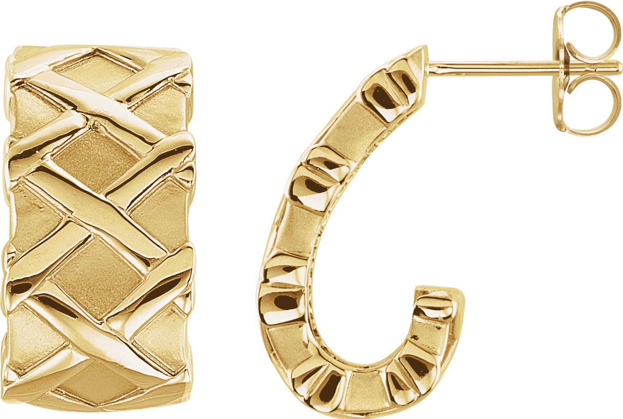 82122 / Earring / 14K Yellow / Pair / Friction Backs Included / Polished / Patterned J Hoop Earring