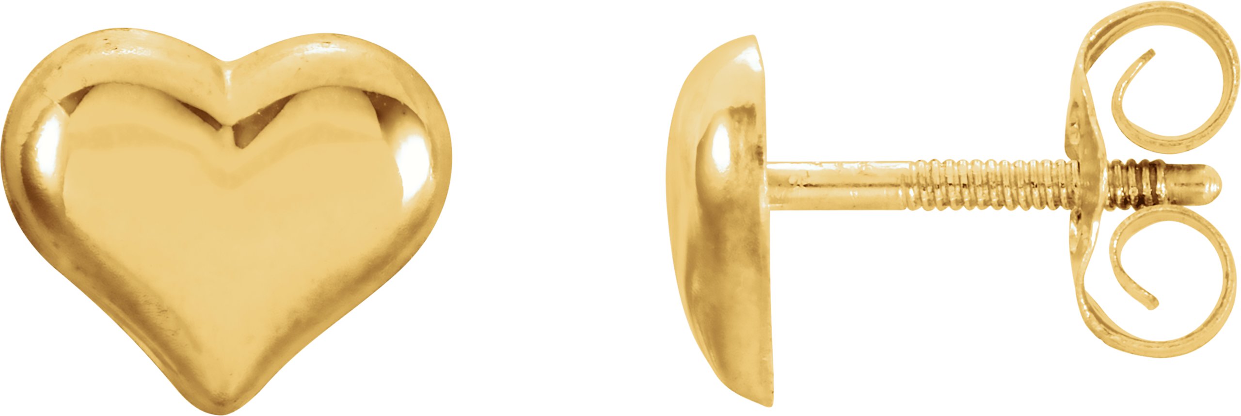 192027 / Earring / 14K Yellow / Pair / Threaded Backs Included / Polished / Puffed Heart Earrings