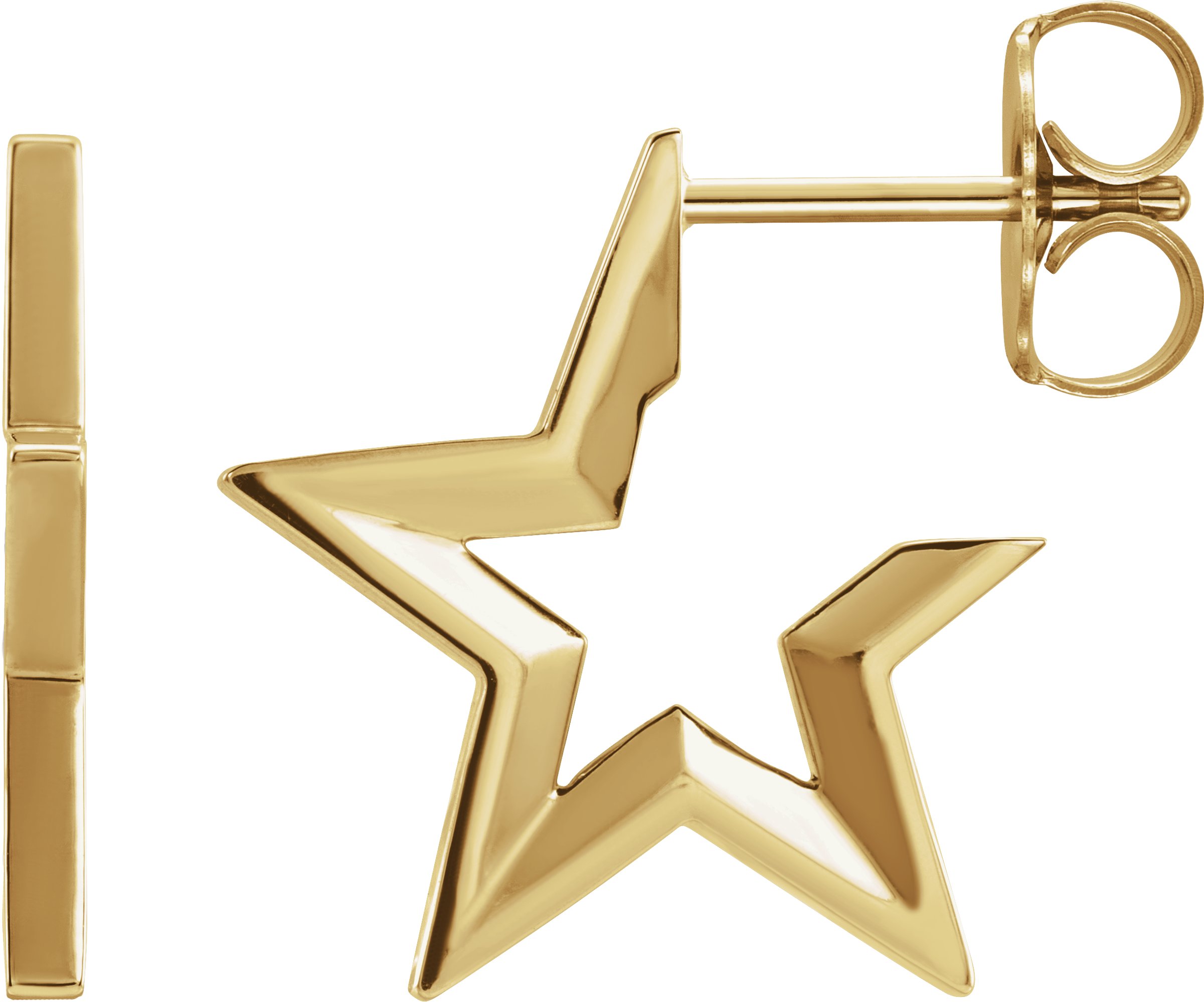 87320 / Earring / 14K Yellow / Pair / Friction Backs Included / Polished / Star Hoop Earrings