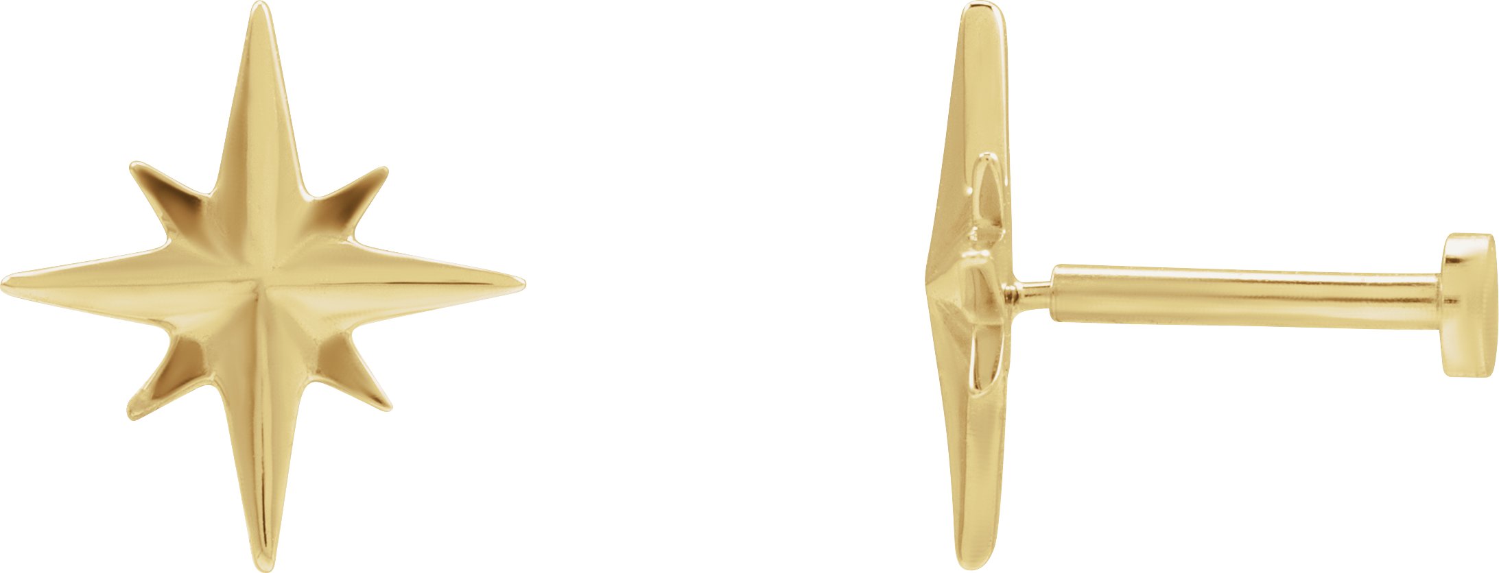 86757 / 14K Yellow / Pair / Friction / Press Fit Back Included / Polished / Star Earrings With Press Fit Posts And Backs