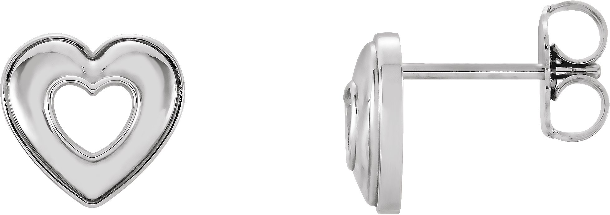 86098 / Earring / Sterling Silver / 8.5 X 8 Mm / Pair / Friction Backs Included / Polished / Heart Stud Earrings
