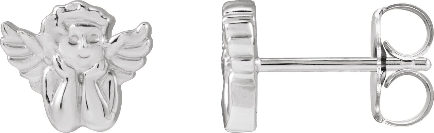 88351 / Earring / Sterling Silver / 8 X 7.15 Mm / Pair / Friction Backs Included / Polished / Cherub Earrings