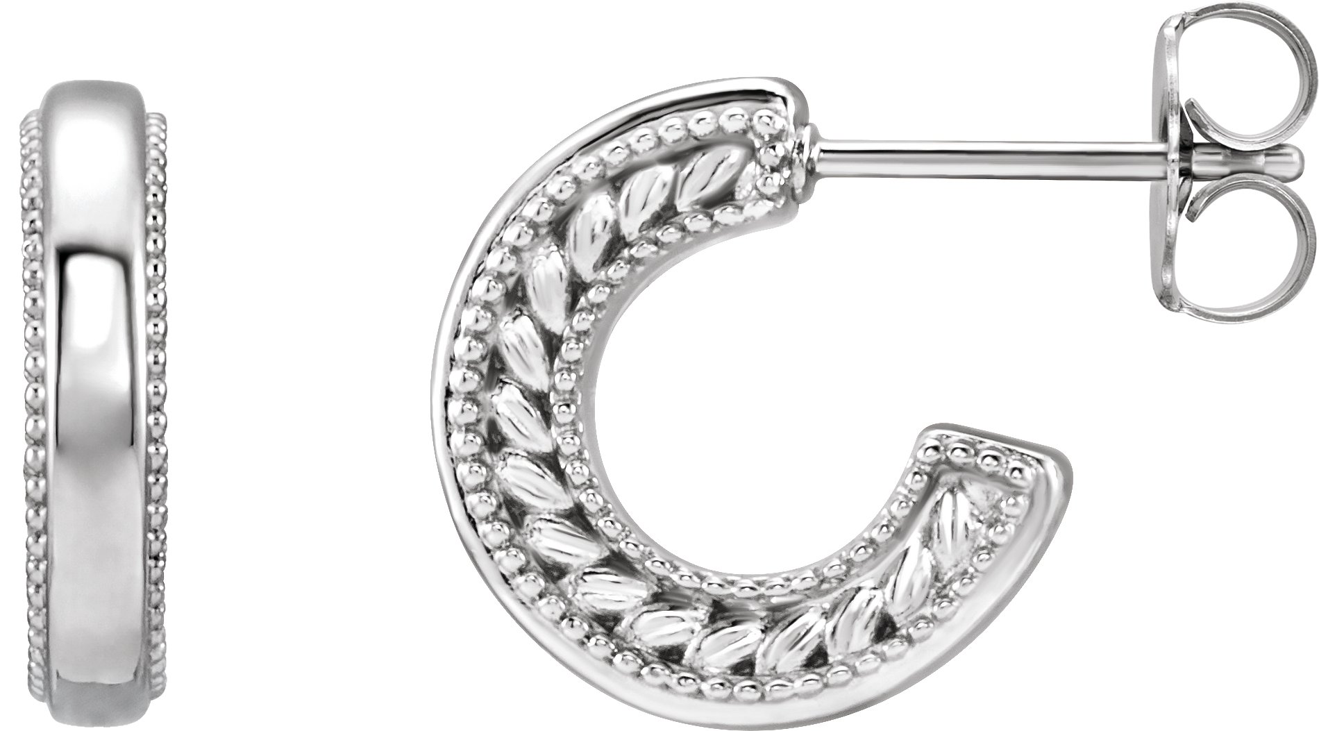 86697 / Earring / Sterling Silver / Pair / Friction Backs Included / Polished / Floral Milgrain Hoop Earrings