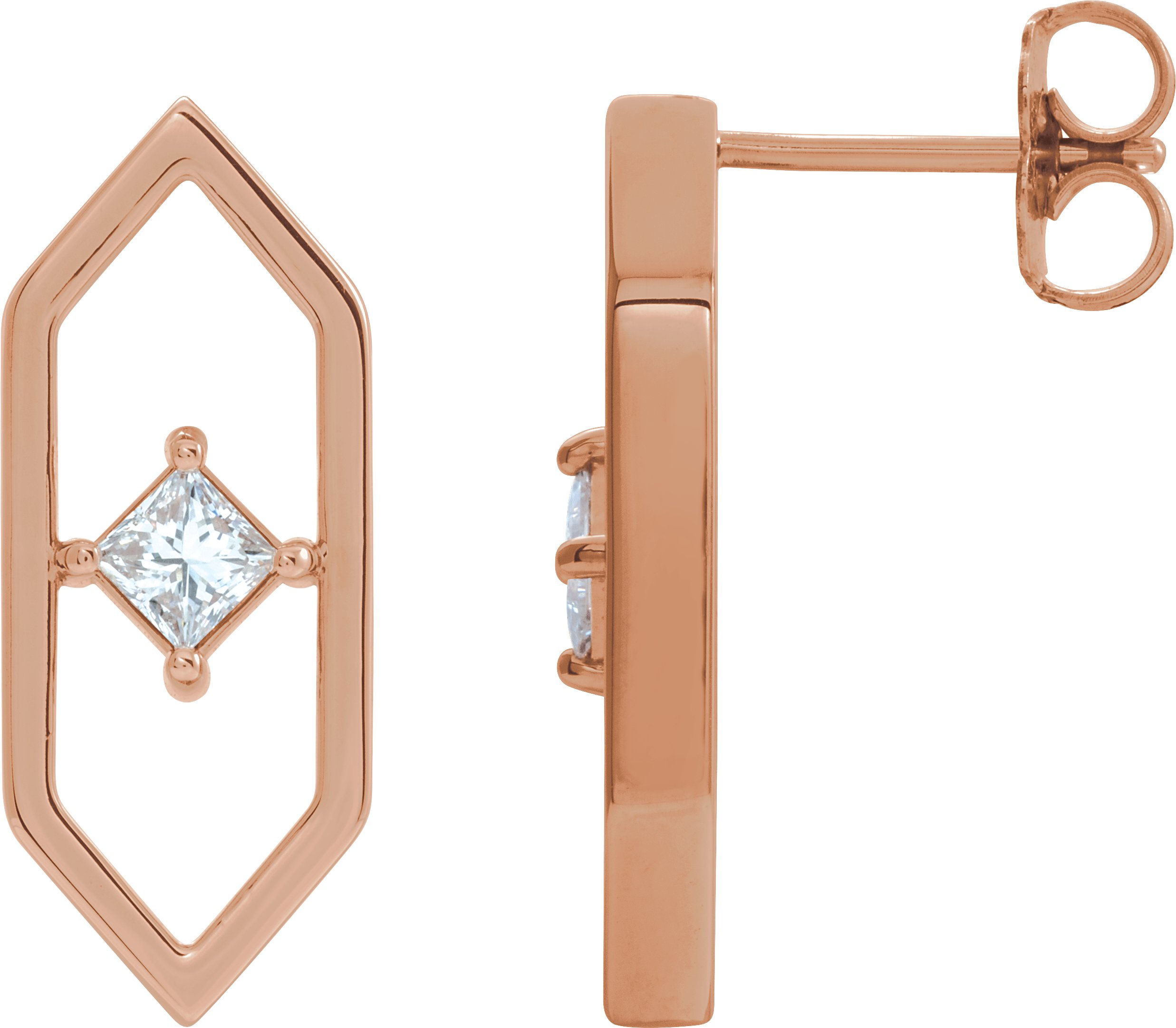 86966 / Earring / Set / Natural Diamond / Square / 3 X 3 Mm / 14K Rose / Pair / Friction Backs Included / Polished / 1/3 Ctw Natural Diamond Vintage-Inspired Geometric Earrings