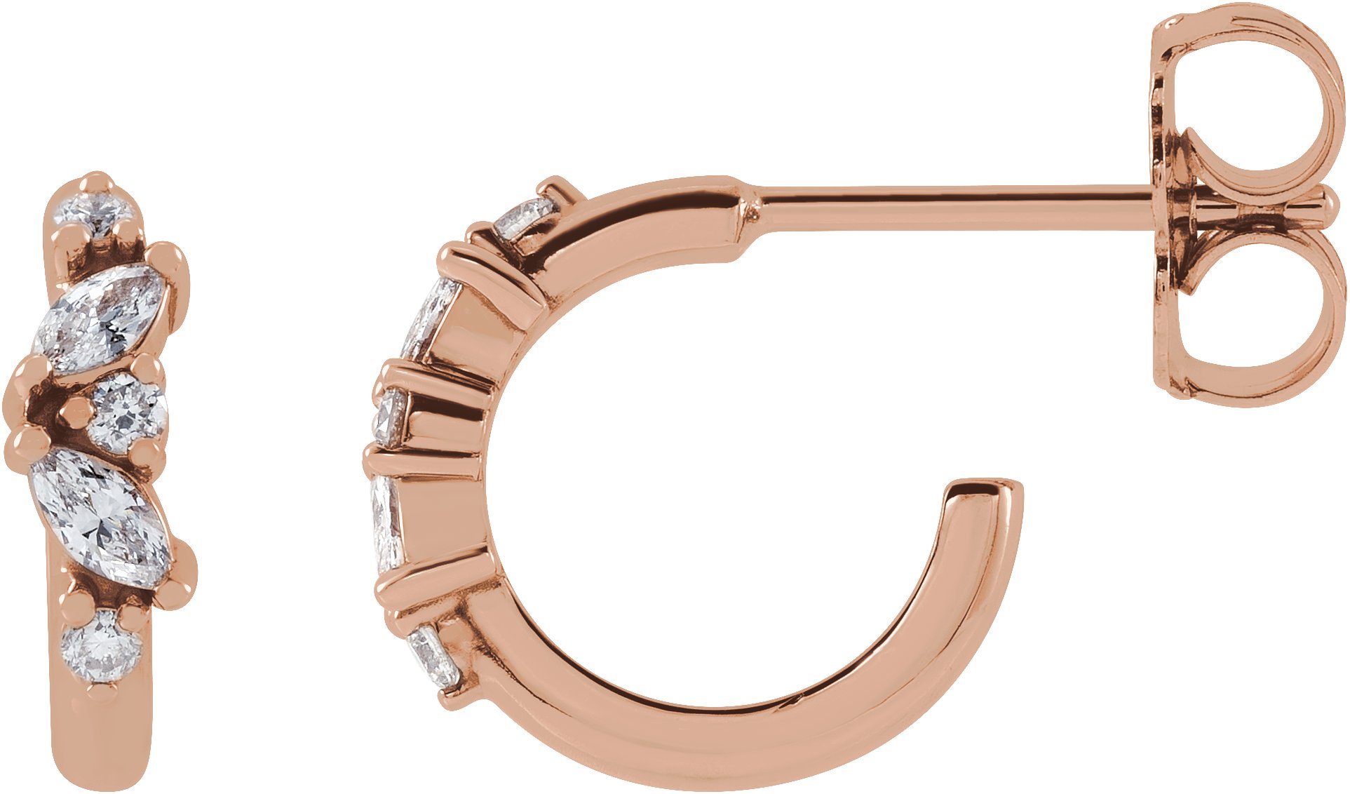 87202 / Earring / Set / Natural Diamond / 14K Rose / Pair / Friction Backs Included / Polished / 1/5 Ctw Natural Diamond Hoop Earrings