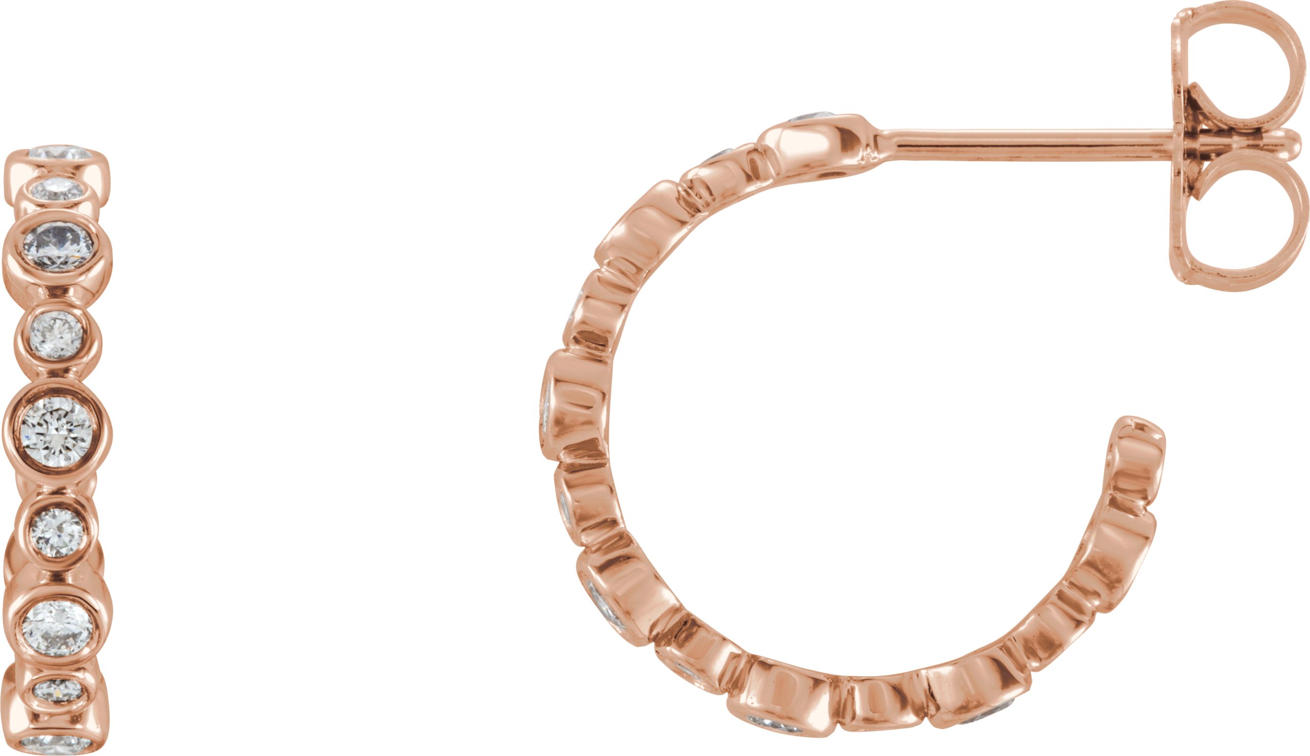 86441 / Set / Natural Diamond / Round / Pair / 3/8 Ctw / 13.7 Mm / 14K Rose / I1, G-H / Friction Backs Included / Polished / Hoop Earrings