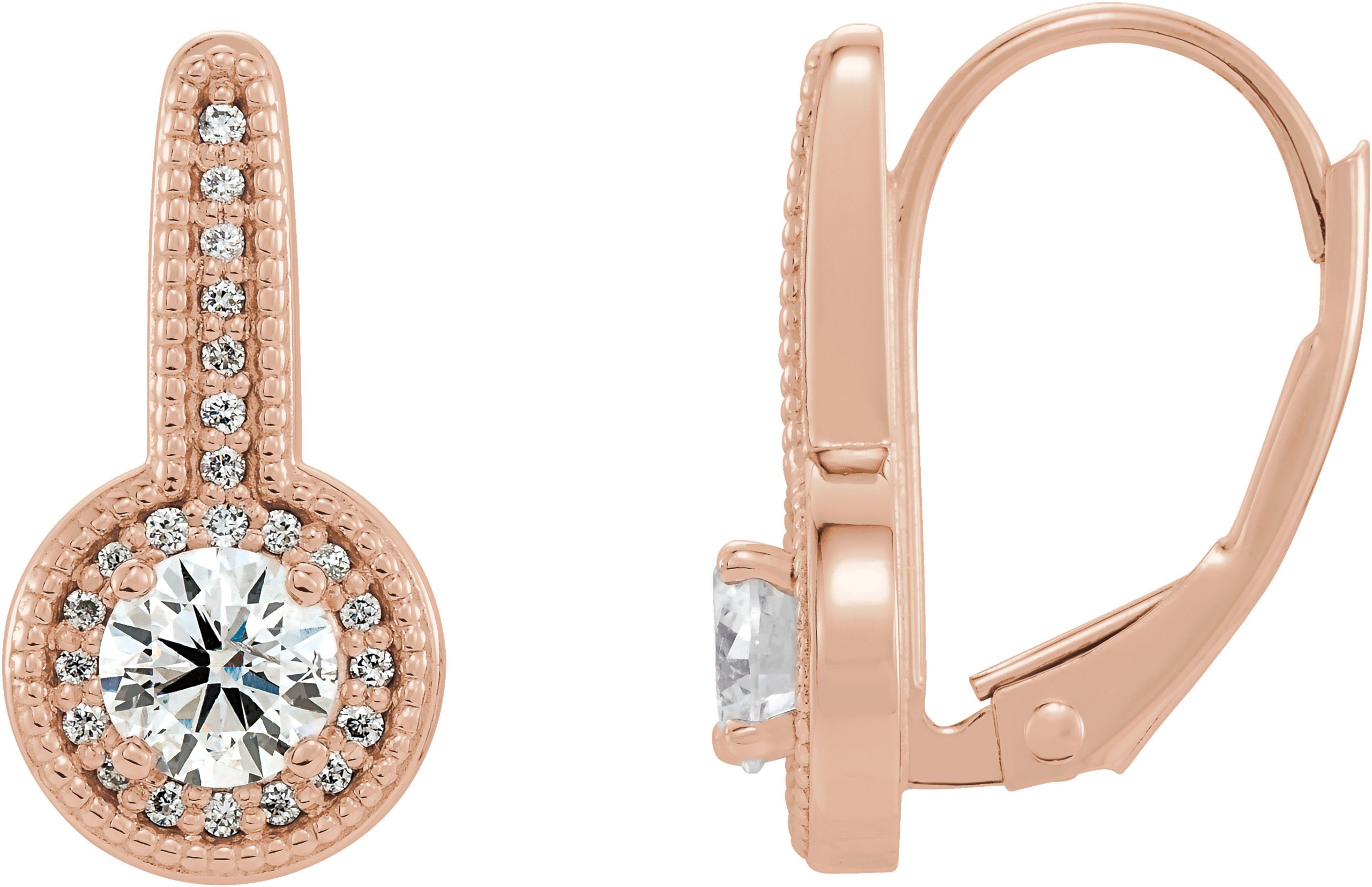 86629 / Set / 14K Rose / Pair / Polished / 5/8 Ctw Diamond Milgrain Halo-Style Dangle Earrings