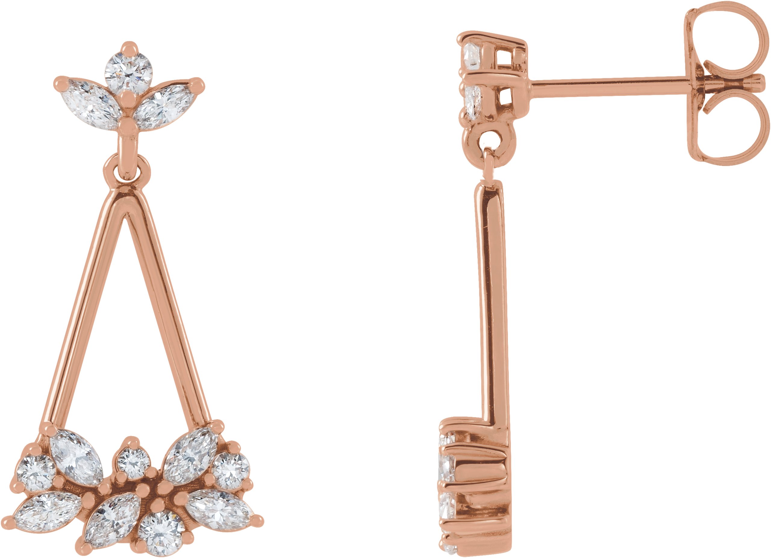 87219 / Earring / Set / Natural Diamond / 14K Rose / Pair / Friction Backs Included / Polished / 5/8 Ctw Natural Diamond Scattered Geometric Dangle Earrings