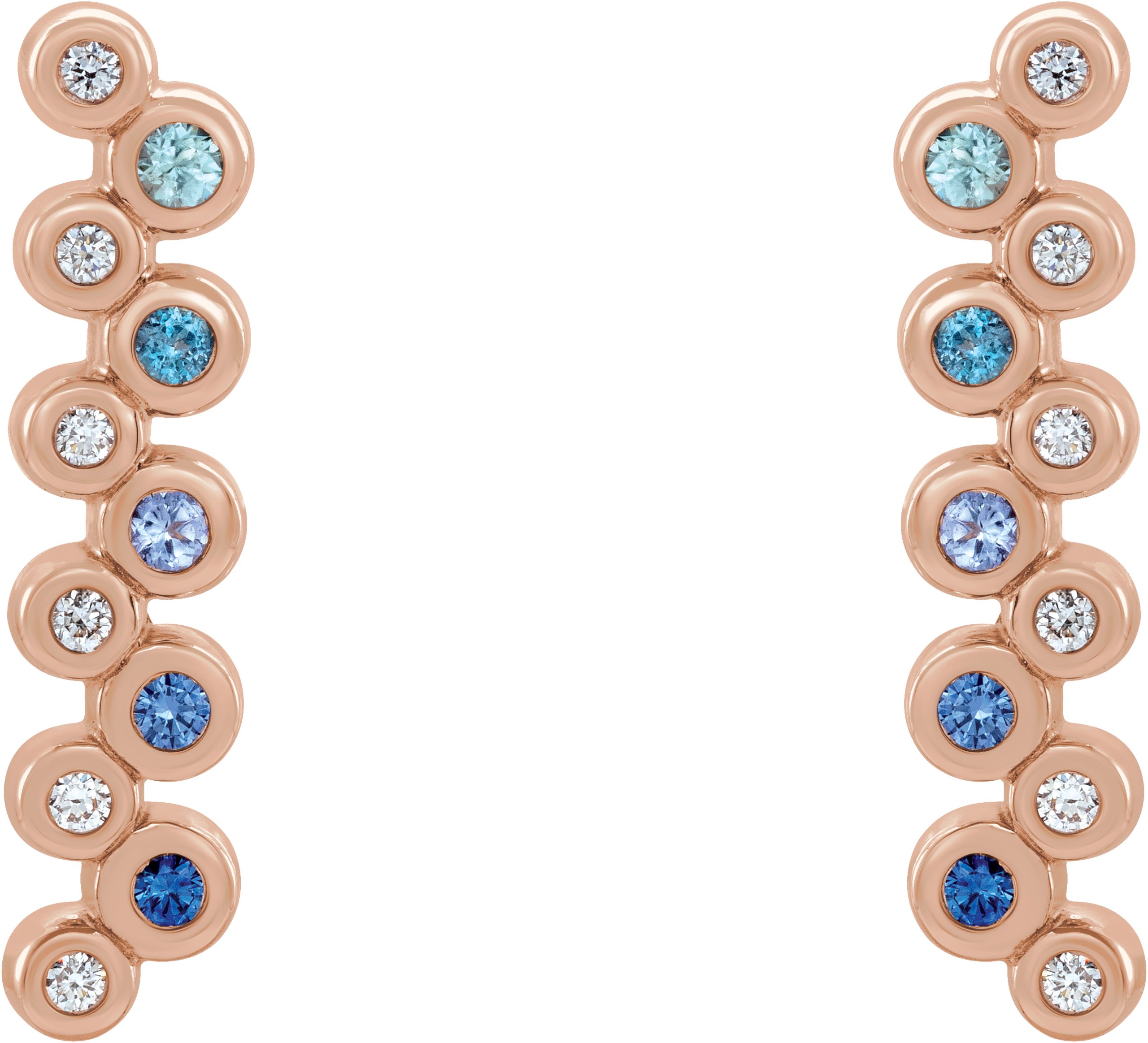 14K Rose Blue Multi-Gemstone & 1/10 CTW Diamond Bezel-Set Bar Earrings