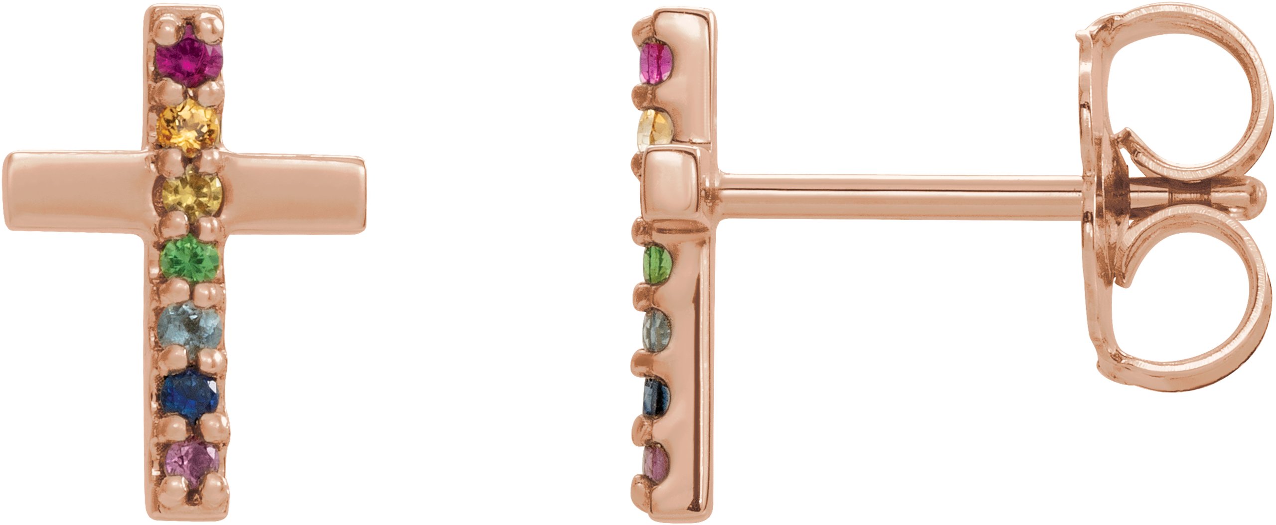 R17028 / Earring / Set / Multi-Gemstone / Round / 1 Mm / 14K Rose / Pair / Friction Backs Included / Polished / Natural Multi-Colored Gemstone Cross Earrings