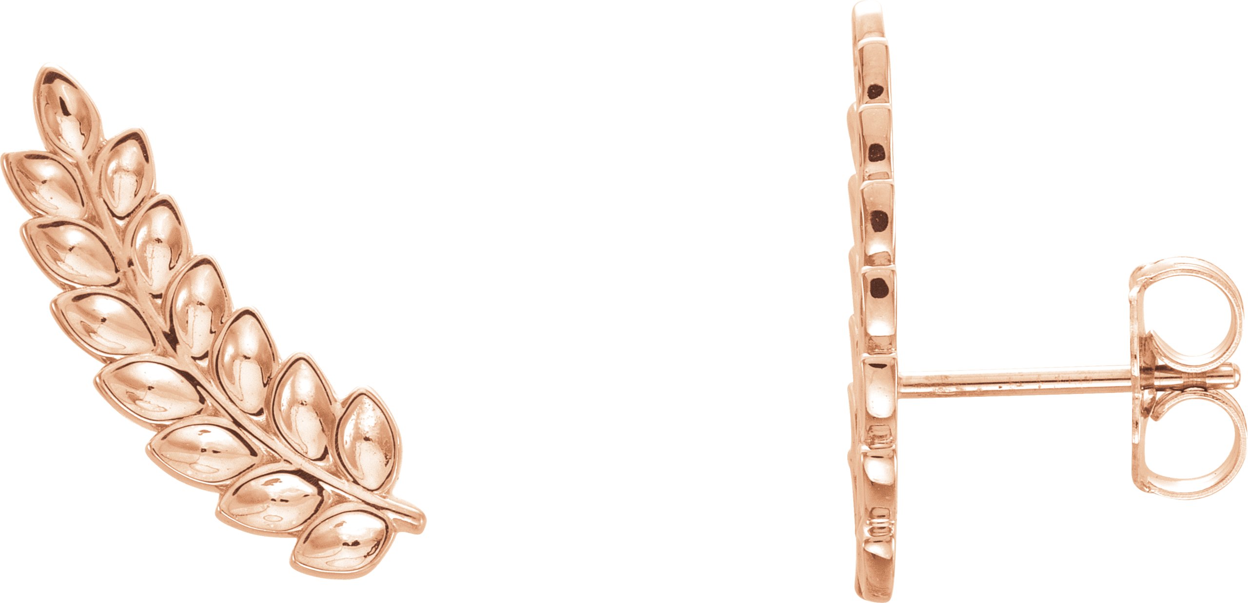 86447 / Earring / 14K Rose / Pair / Friction Backs Included / Polished / Petite Leaf Ear Climbers