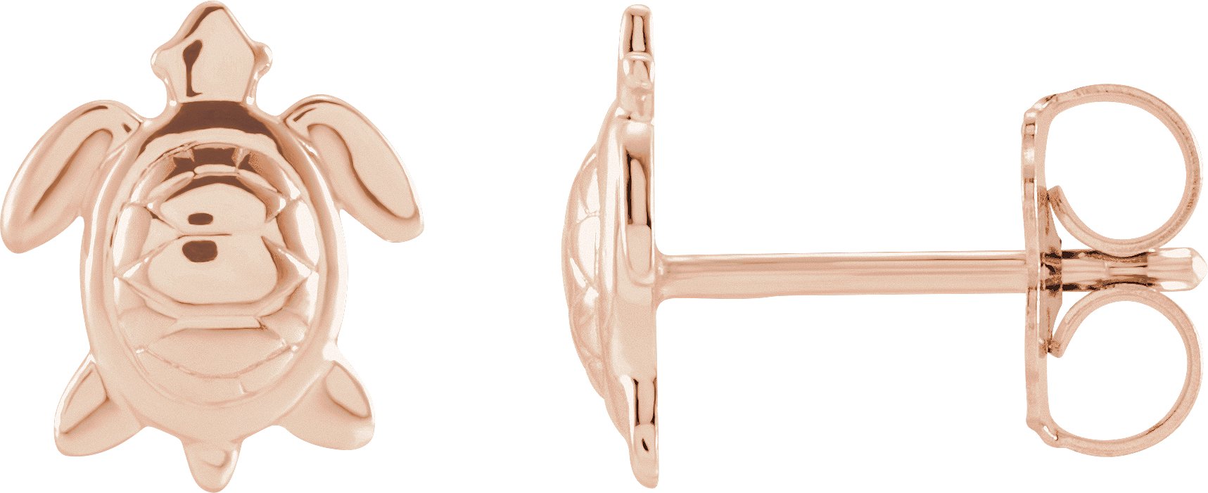 87369 / Earring / 14K Rose / 8.8 X 7.4 Mm / Pair / Friction Backs Included / Polished / Sea Turtle Earrings With Back