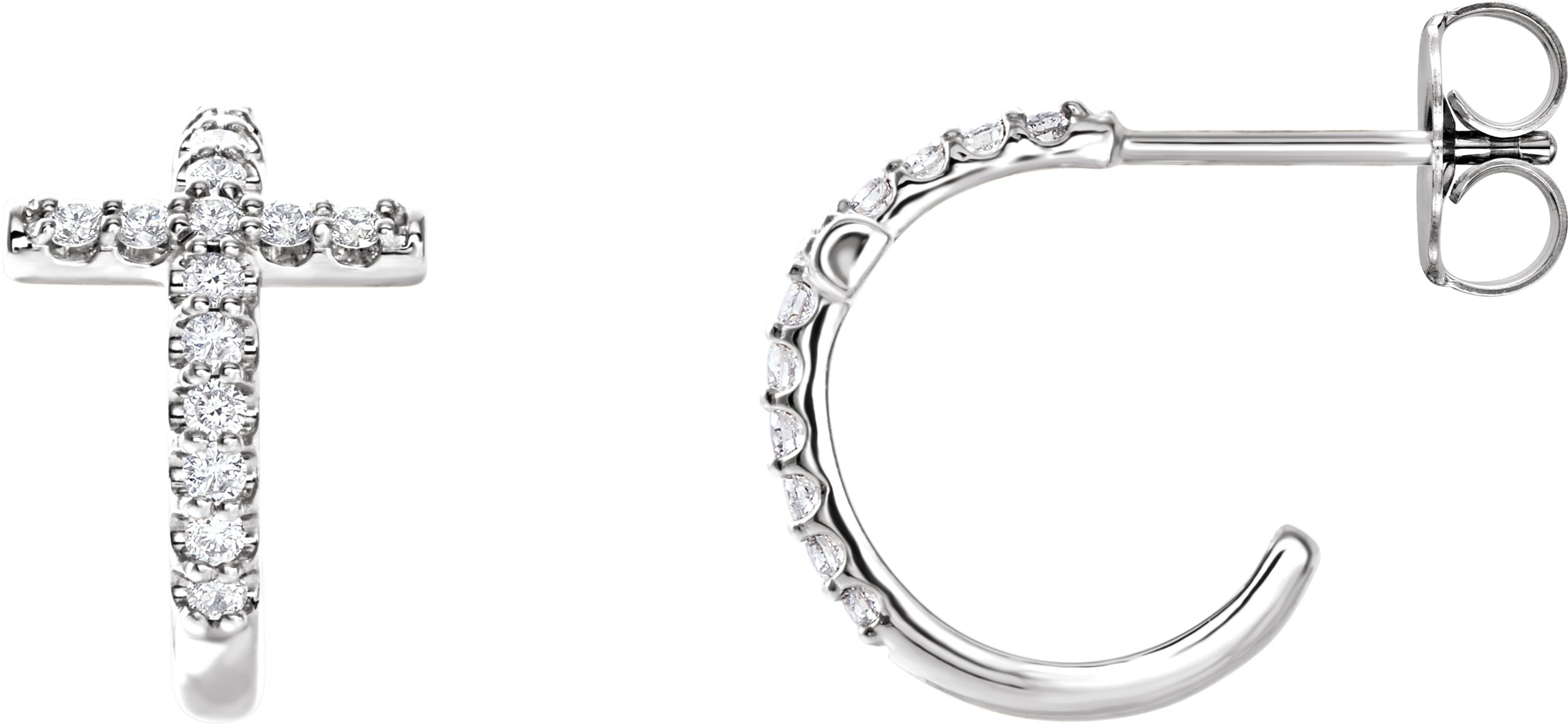 86808 / Earring / Set / Natural Diamond / Round / 1.3 Mm / 14K White / Pair / Friction Backs Included / Polished / 1/4 Ctw Natural Diamond Cross Hoop Earrings