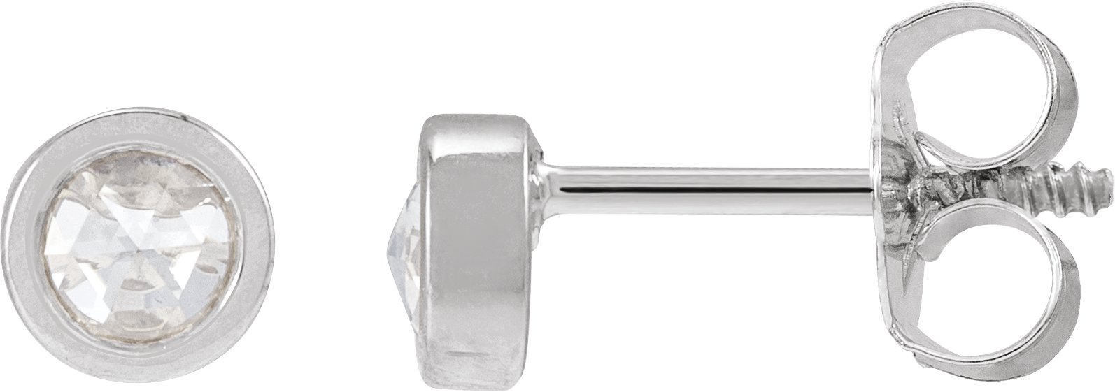 88261 / 14K White / Set / Round / Natural Diamond / Pair / 3Mm :: 1/5 Ctw / Vs/Si1, Ghi / Threaded / Threaded Backs Included / Bezel / Polished / 1/5 Ctw Rose-Cut Natural Diamond Youth Bezel-Set Earrings