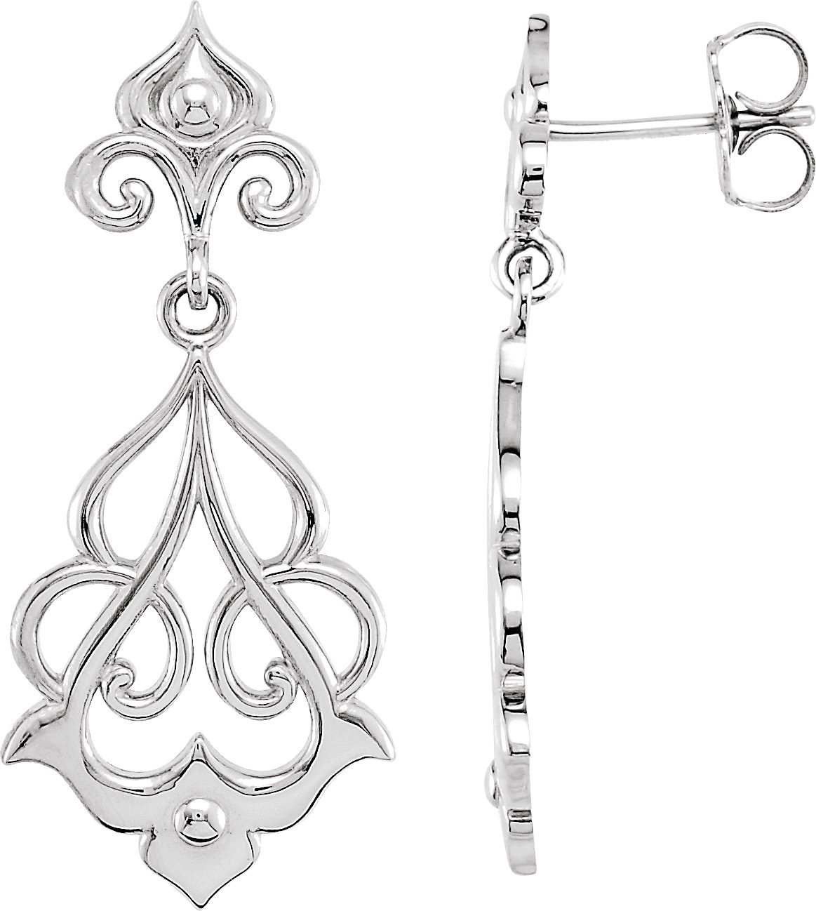 85578 / Earring / 14K White / 29 X 12.9 Mm / Pair / Friction Backs Included / Polished / Decorative Earrings