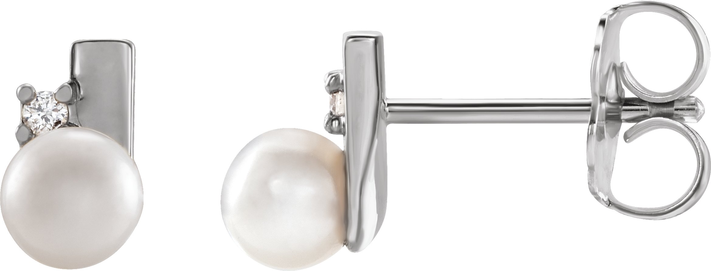 87286 / Set / Cultured White Akoya Pearl / 4Mm / 14K White / I1, G-H :: 0.03 Ctw / Friction Backs Included / Pair / Polished / White Akoya Pearl And .03 Ctw Diamond Geometric Earrings