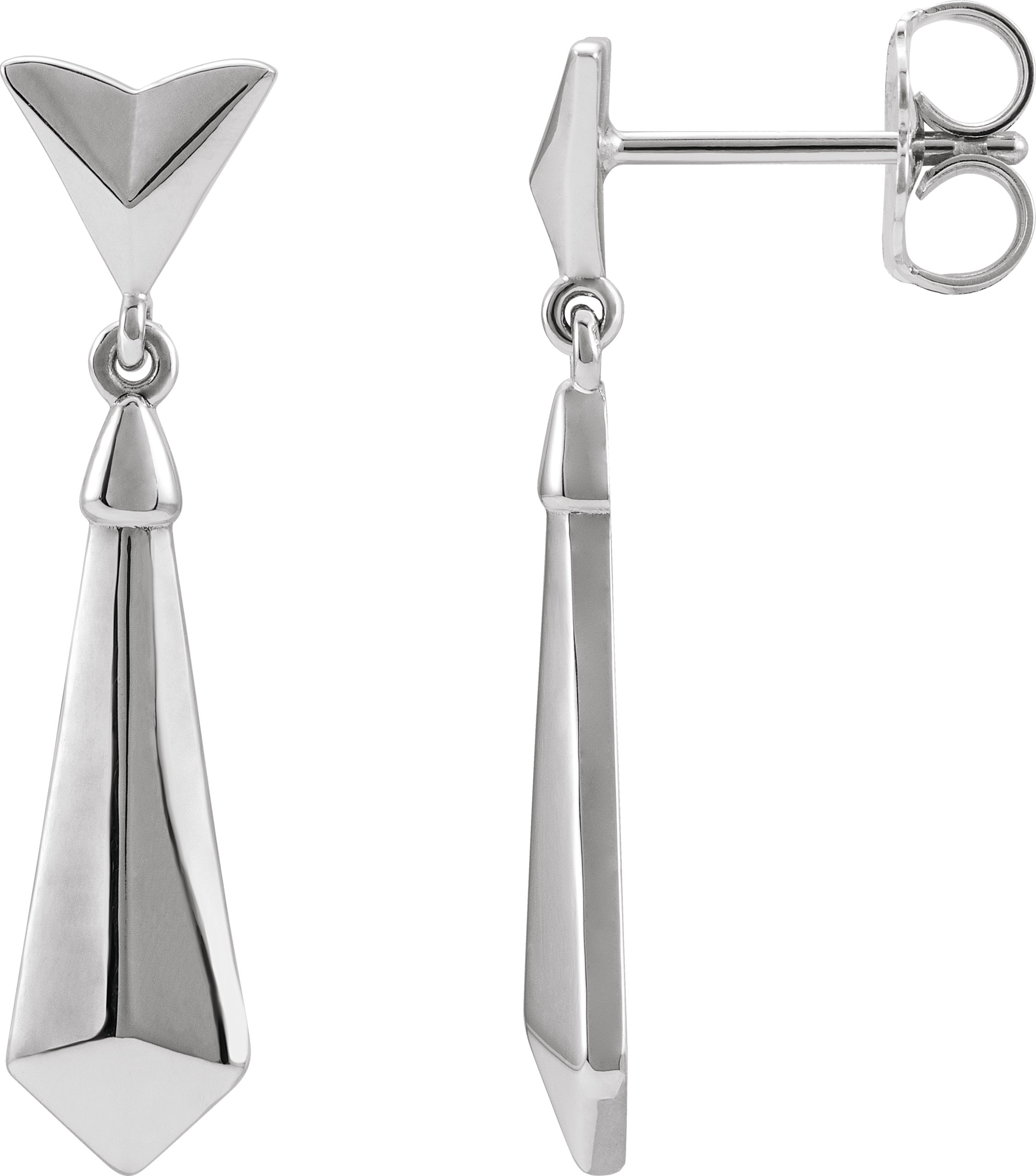 87149 / 14K White / Earring / Friction Backs Included / Pair / Polished / Geometric Dangle Earring With Backs