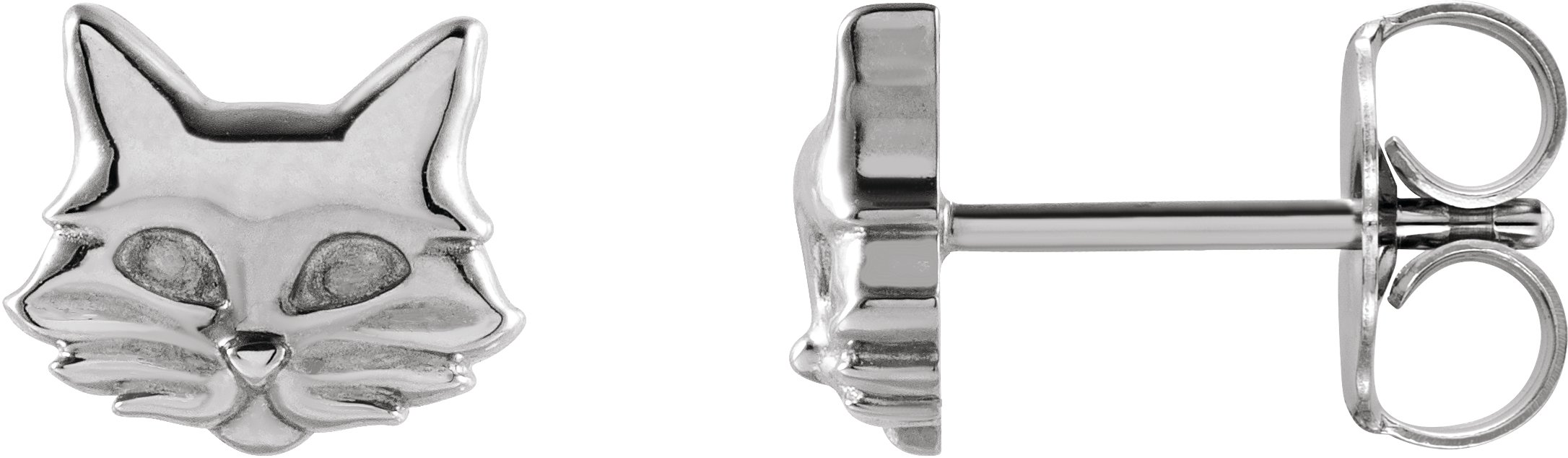 87359 / Earring / 14K White / Pair / Friction Backs Included / Polished / Tiny Cat Earrings