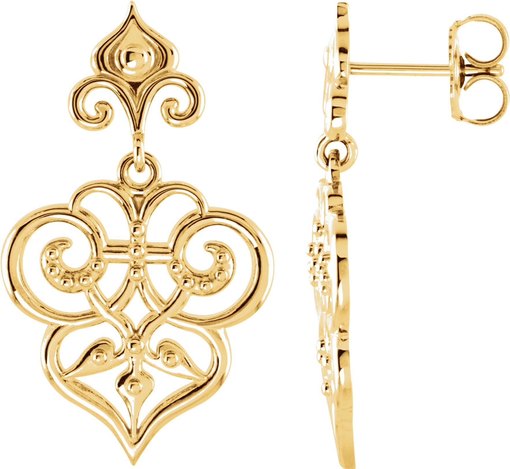 14K Yellow 17.2x16 mm Fleur-de-Lis Earrings