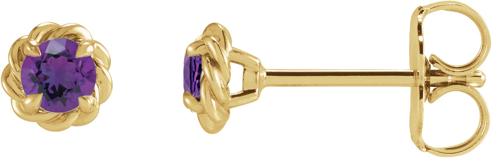 87550 / Earring / Set / Natural Amethyst / Round / 4 Mm / 14K Yellow / Pair / Friction Backs Included / Polished / Natural Amethyst Claw-Prong Rope Earrings