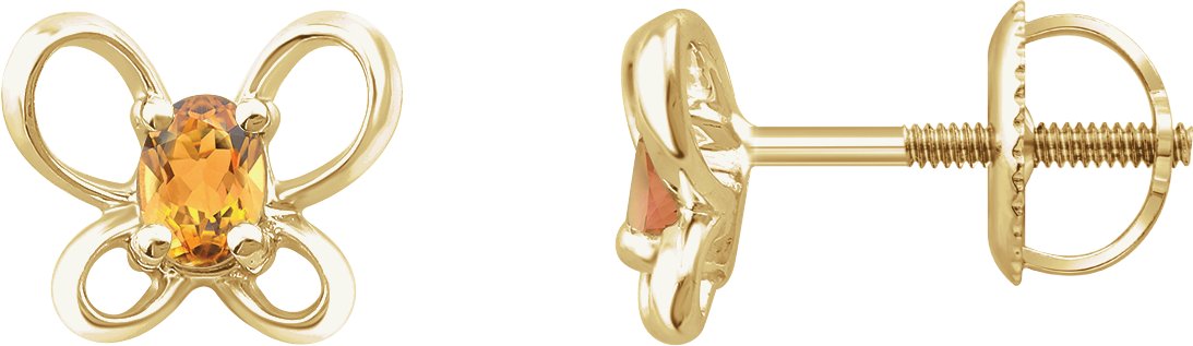 653416 / Set / 14K Yellow / November / Pair / Threaded Post / Without Box / Polished / Butterfly Youth Earrings W/Threaded Backs