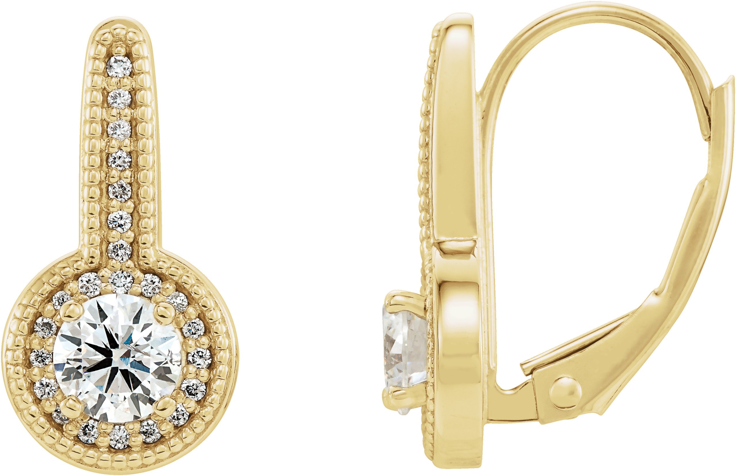 86629 / Set / 14K Yellow / Pair / Polished / 5/8 Ctw Diamond Milgrain Halo-Style Dangle Earrings